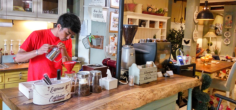 Sebuah coffee shop yang memiliki interior penuh dengan furnitur bergaya vintage. Ternyata bukan hanya menawarkan suasana, kopinya juga enak.